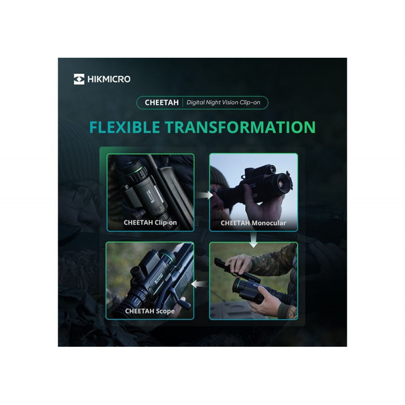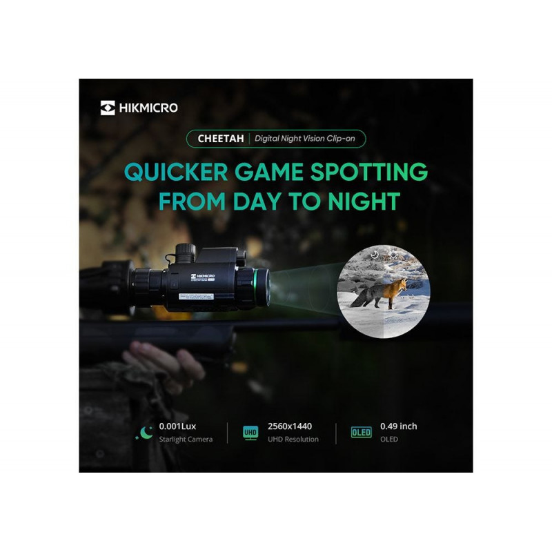 The practical use of the HikMicro Cheetah Clip-On 940 nm IR night vision scope without a reticle is very wide, while also being very easy to use. By means of four modes, it can be used at any moment of the day: