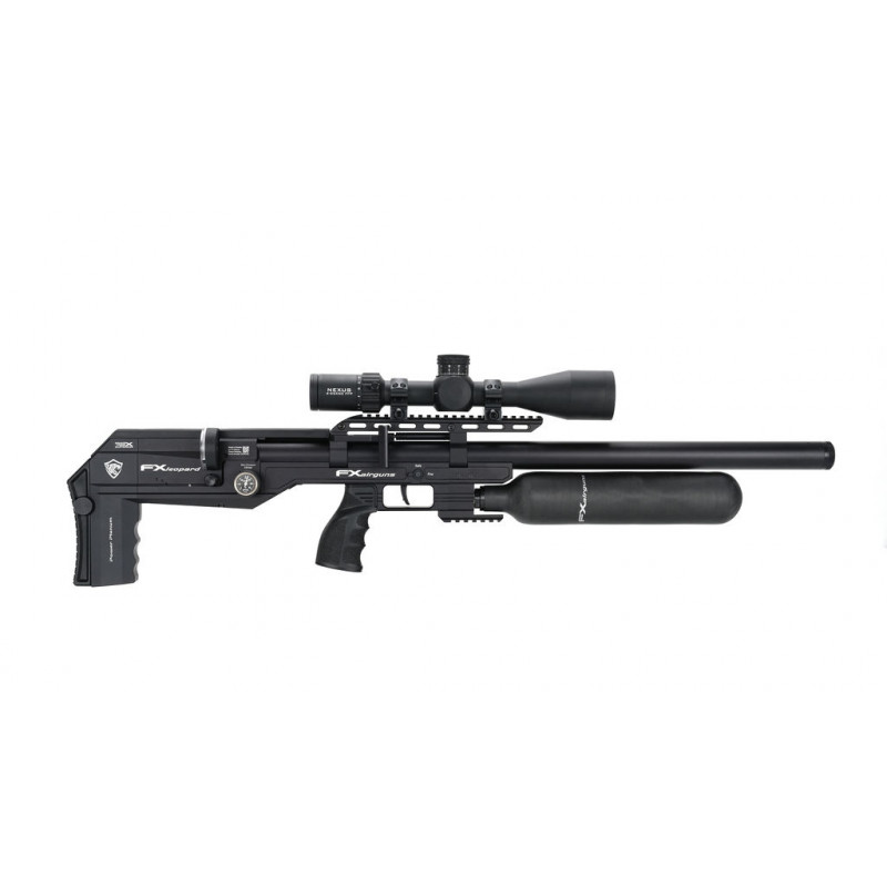 The FX Leopard Bottle Version incorporates a rigid over-the-barrel air system combined with a carbon fiber bottle, maximizing onboard air for an exceptional shot count. providing extended shooting sessions and optimal performance for both low-power and high-power setups. With a 20 MOA incline built directly into the scope rail and a Picatinny accessory rail at the bottom, this version is the perfect companion for both long-range and benchrest shooters.