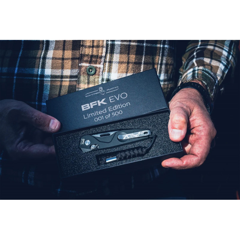 The BFK EVO is a compact folding knife designed as the flagship entry of Extrema Ratio into the EDC world. Produced in a limited edition of 500 pieces, it can be purchased exclusively with THE CARRY BOX.