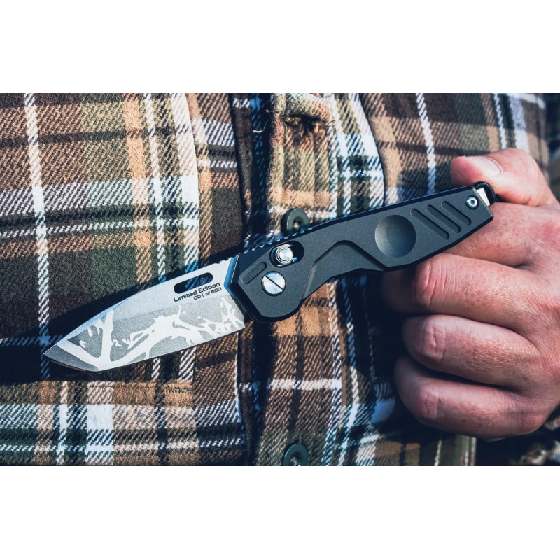 Dedicated laser engravings on both blade and clip give the knife a strong identity and confirm its belonging to the series.