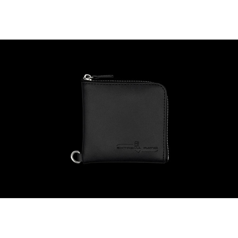 Urban-style black leather wallet with a three-sided zipper closure and a small hook to attach a lanyard to belt loops, preventing accidental loss or unwanted removal. Designed to hold everything you need (credit cards, banknotes, etc.), it is an accessory built to last as long as Extrema Ratio tools – an everyday essential.