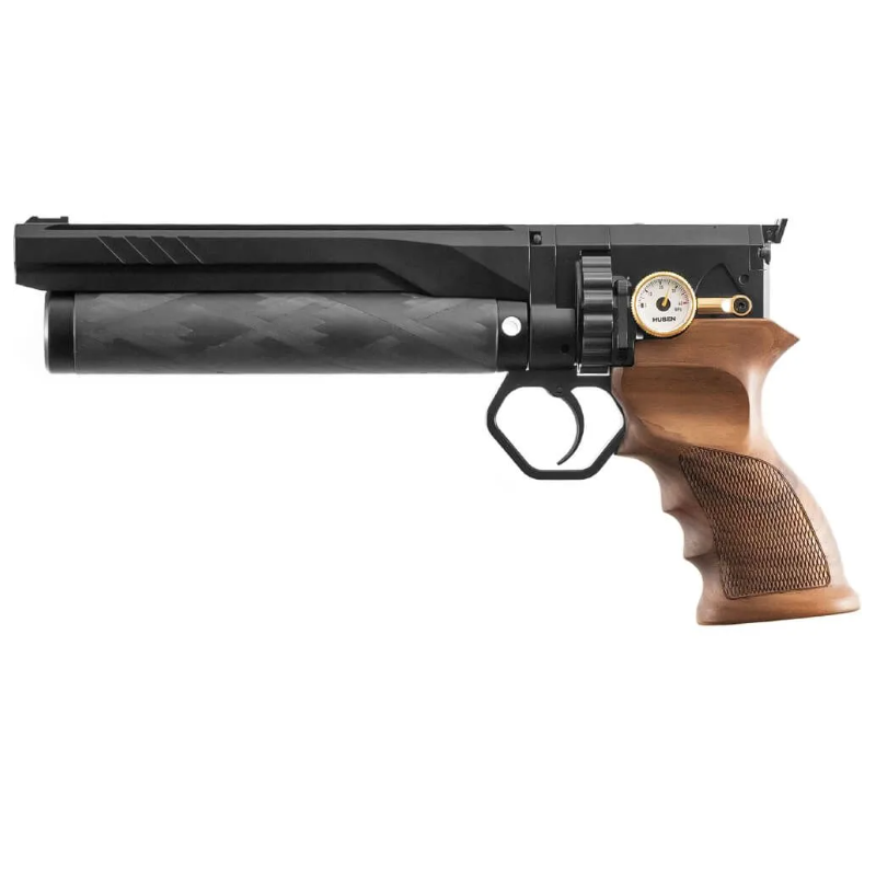 At the heart of the Huben GK1 V3 lies a 210 mm barrel and an 85 cc PCP-cylinder. Monitoring air pressure is effortless with the integrated gauge, promoting optimal performance. Refilling the cylinder is hassle-free using the provided fill adapter, conveniently located on the left side.