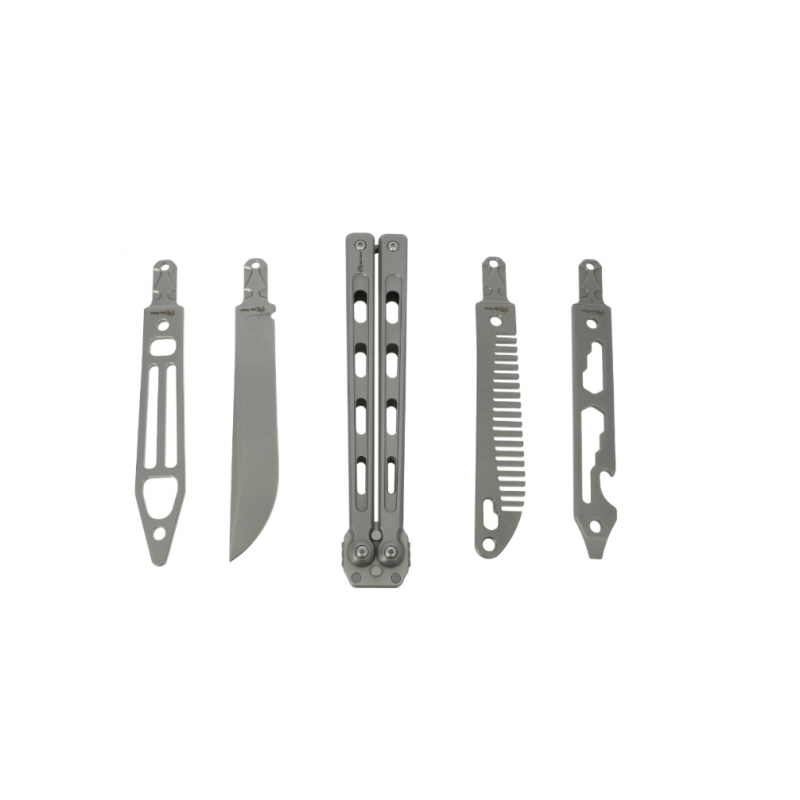 The MK136 is a butterfly knife with interchangeable blades. Its four blades make it practical in many situations. To unlock and remove a blade, press the two side buttons located at the end of the handle.