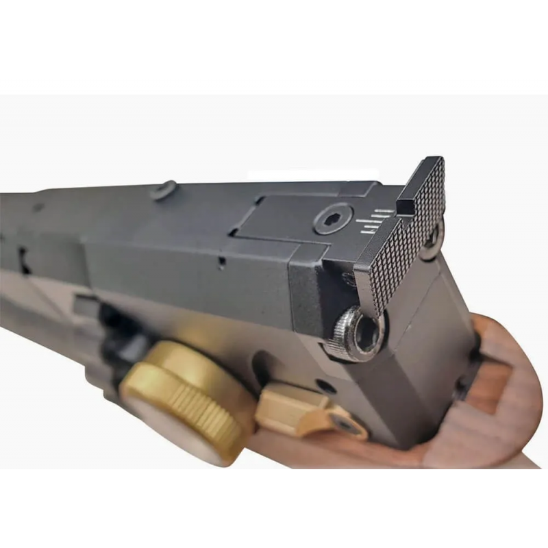 Fine-tuning the pistol’s power is intuitive, thanks to the adjustable mechanism accessible via an Allen key. Enhancing accuracy, the 11 mm Dovetail scope rail atop the barrel shroud accommodates a red dot sight or utilizes the adjustable open sights for precision aiming.