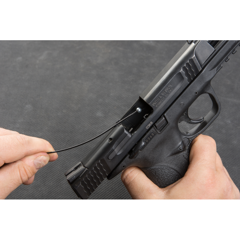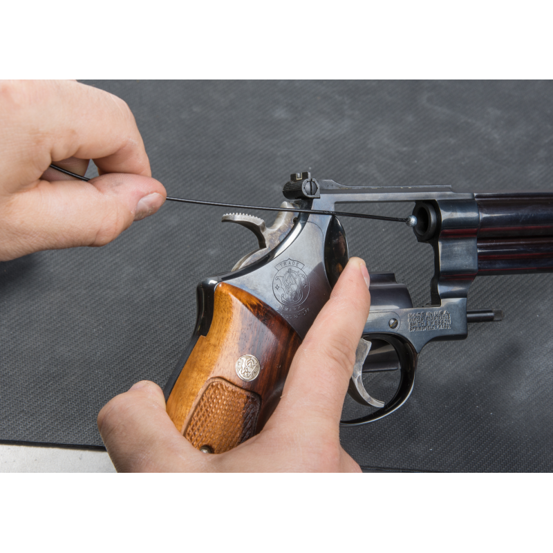 Livré dans son étui de rangement qui lui sert de poignée, il se compose d'un câble avec un écouvillon bronze intégré et sa tresse de nettoyage.