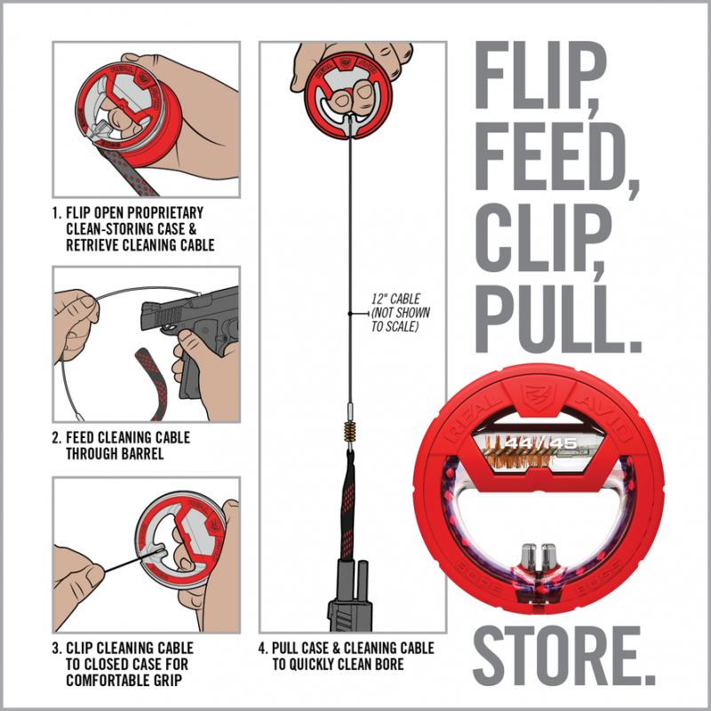 Ouvrez, insérez, clippez et tirez. Le BORE BOSS peut alors retourner dans son étui flexible pour être rangé.