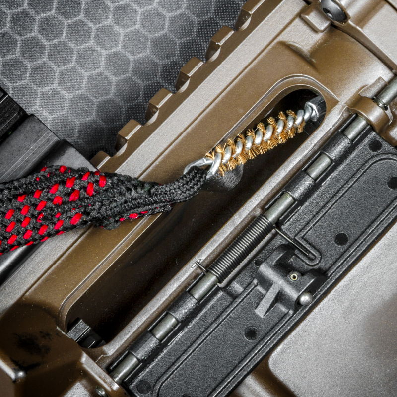 Livré dans son étui de rangement qui lui sert de poignée, il se compose d'un câble avec un écouvillon bronze intégré et sa tresse de nettoyage.