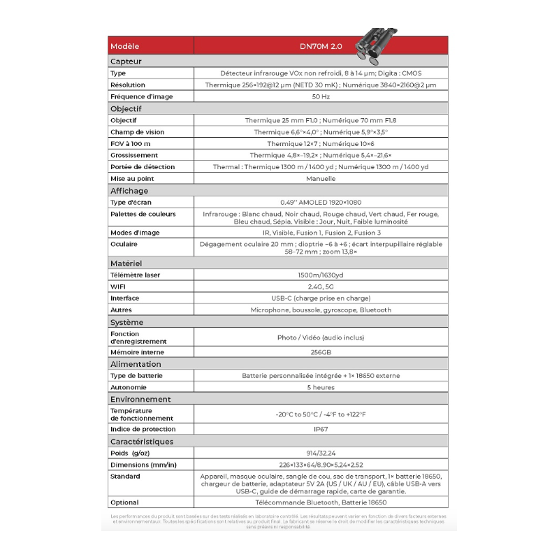 Caractéristiques techniques :