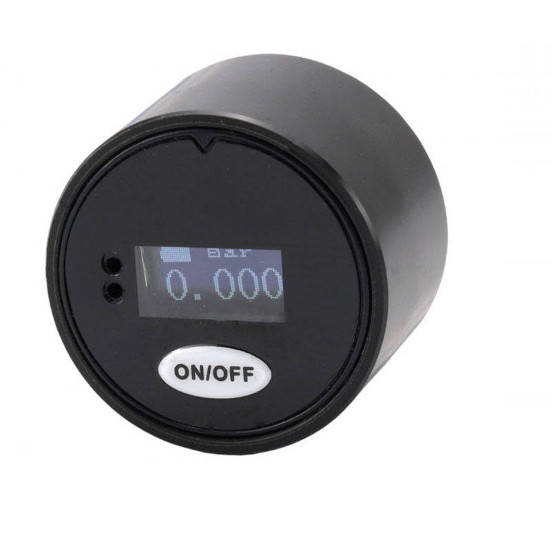 Mini manomètre numérique rechargeable, diamètre 28 mm, avec couvercle tactique noir.