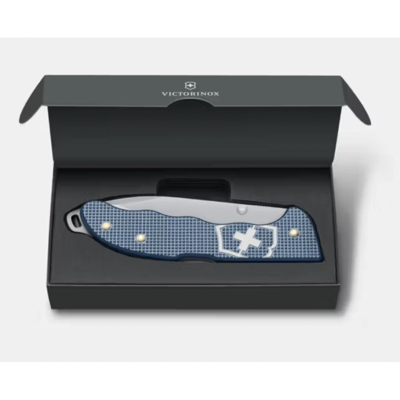 Inspiré de la nature, construit avec une technicité complexe, l’Evoke Alox Limited Edition 2026 se distingue par son profil unique. Paré d’une couleur Bleu glacier exclusive, il évoque la puissance sereine de la glace des Alpes. Des côtes en aluminium gaufré et éloxé l’enserrent, lui conférant une robustesse supérieure qui vous assure un couteau de poche fiable dans toutes vos aventures en plein air.