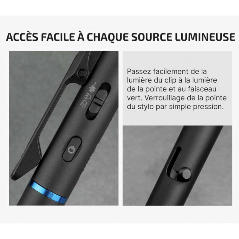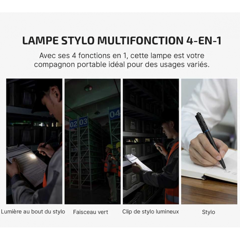 | Lampe de la pointe du stylo | 0,4lm pendant 26h |